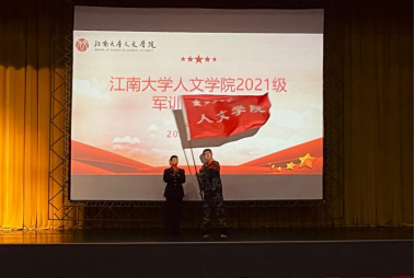 随后,刘璇刚老师为2021级军训连授旗,在铿将有力的摇旗下,刘璇刚老师以自我为表率号召同学们积极投身到此次军训当中。