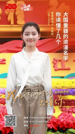 10 月 20 日,江苏省“我比任何时候更懂你”系列短视频总结交流会在南京举行。江苏省委网信办主任兼省委宣传部副部长徐缨,凤凰出版传媒集团党委书记、董事长梁勇,省委网信办副主任刘伟出席会议。会议现场公布了“十佳青青讲述人”“优秀青青讲述人”“最佳组织奖”“优秀组织奖”等奖项,2019级汉语言文学专业孙双杰同学获评“十佳青春讲述人”称号。