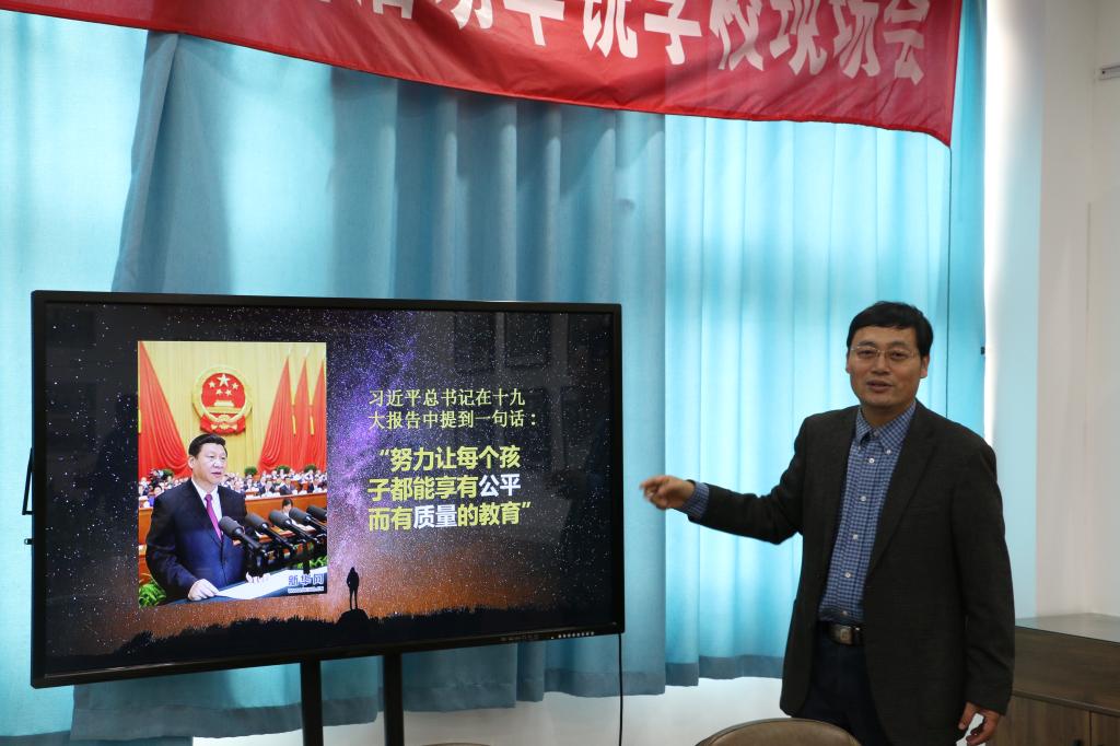 韩荣寨现场分享华锐教育集团的办学情况