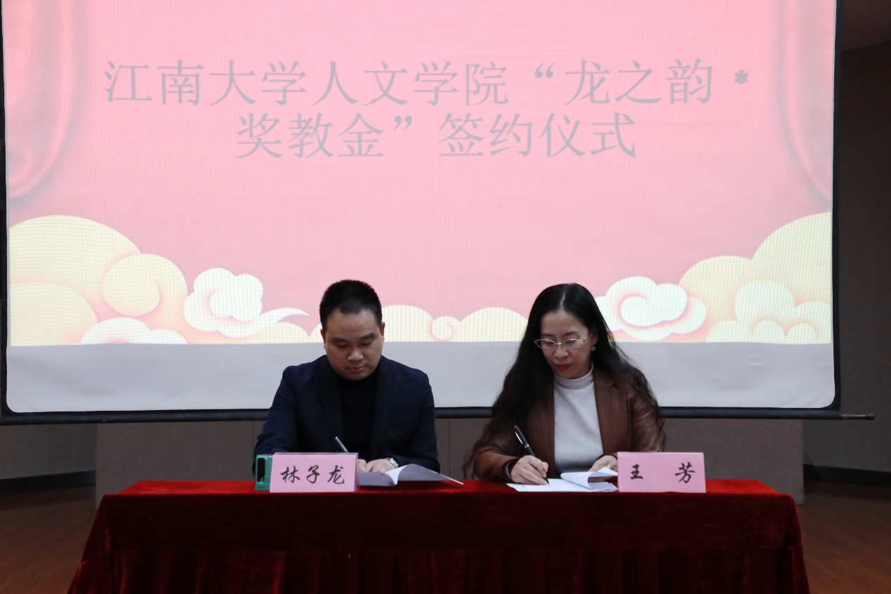 此次聘任仪式上,王芳代表公司与龙之韵文化发展有限责任公司董事长林子龙签订了“龙之韵”奖教金的协议书,为公司各项活动的举行提供了更多的社会支持。