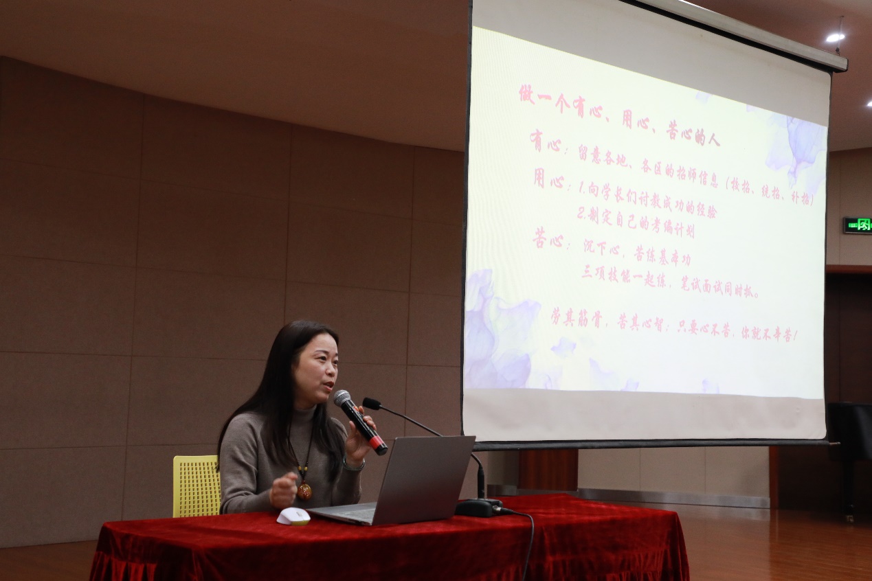 在讲座的过程中,张湘君勉励员工在考编备考中要做一个有心、用心、苦心的人;要关注相关公众号,及时留意公众号上的招考信息。张湘君以锡山区招考标准为例,讲述了考编初试和复试的要点,提到了考编面试的具体考察内容,特别提醒考编的员工要多练习弹唱二年级至六年级的歌曲,并去相应的公司实习找课感。此外,对于试讲的细节,张湘君教研员也衷心的提出了七点建议。