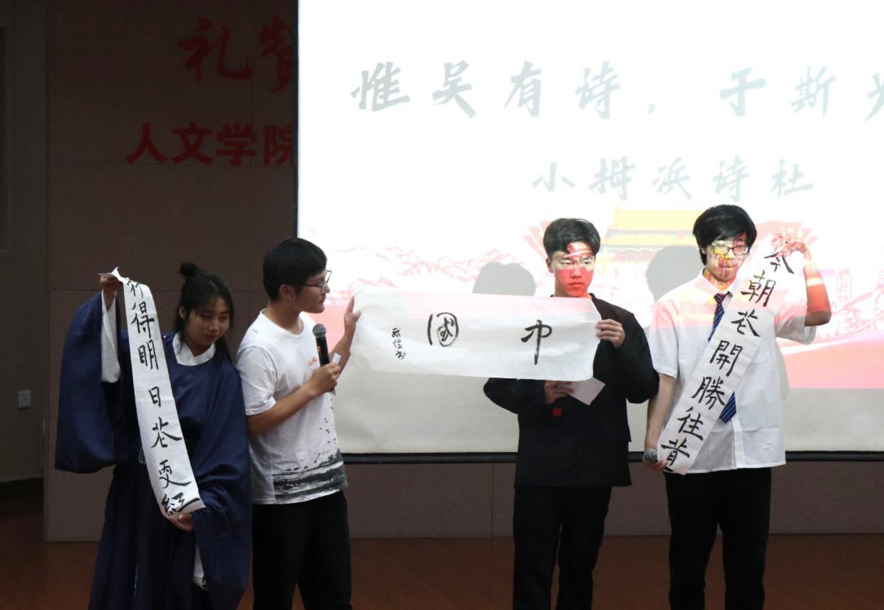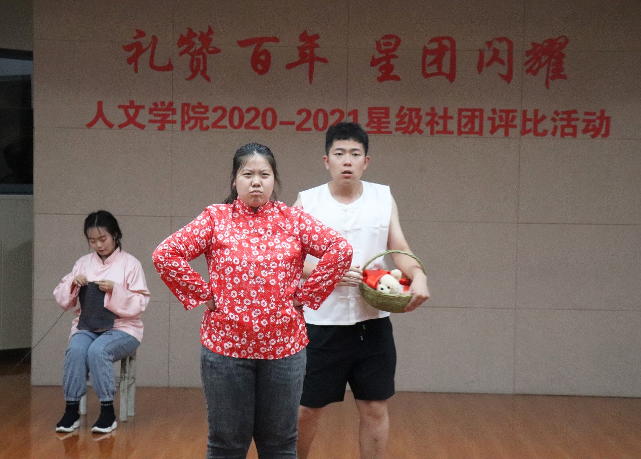 社团魅力展示环节,小姆浜诗社用诗歌传递坚定热爱祖国的信念,用诗歌表达对党忠贞不渝的决心。从南湖红船到解放全中国再到西部大开发和北京奥运会,鸢瞳摄影协会用一张张照片带观众重温那些党的历史时刻。边界文学社带来了原创诗朗诵《红色》,在深情朗诵中,雄壮的呐喊仿佛回响在耳边,爱国的热情在心中不断激荡。国学社同学带来的现代京剧《好闺女》的表演让人眼前一亮,还为现场观众展示了中国传统礼仪“揖礼”,帮助大家更深刻的了解到中华传统礼仪的趣味和魅力。种子话剧团带来的话剧《红色》充分体现出了其“十年磨剑 精益求精”的创作信念。