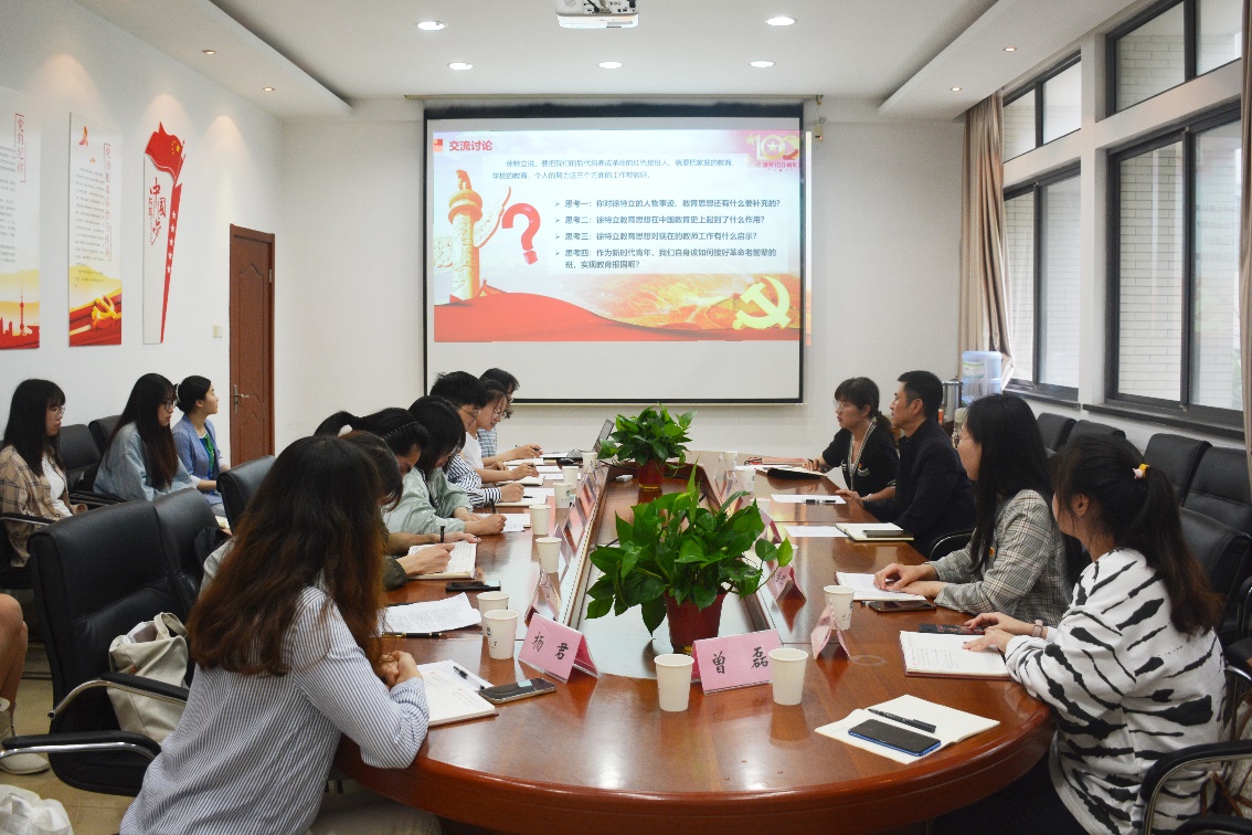 接下来,支部成员在前期学习基础上,围绕徐特立个人事迹、教育思想、历史意义、当代价值与启示这四个方面结合自身经历和个人感悟展开了讨论。与会同志表示,徐特立的教育思想在当代依然具有现实现实意义和价值,例如他的“德智体全体发展”理论、“创造教育”的理论以及“在全面发展的同时注重员工个性化发展”的思想在现在依然具有指导意义。作为未来的教育工作者,我们应该坚守徐特立老前辈立德树人的教育初心,在教育领域实现自身价值。