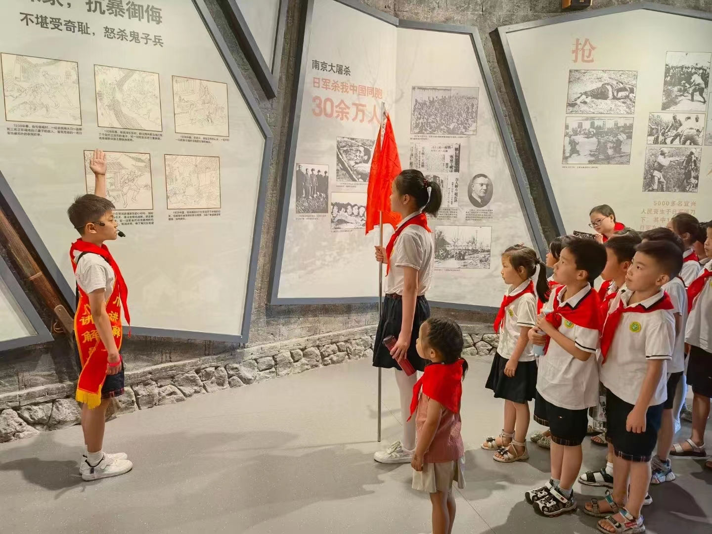 图为员工们参观宜兴党史陈列馆,以高年级员工带领低年级员工,并由员工自主讲解