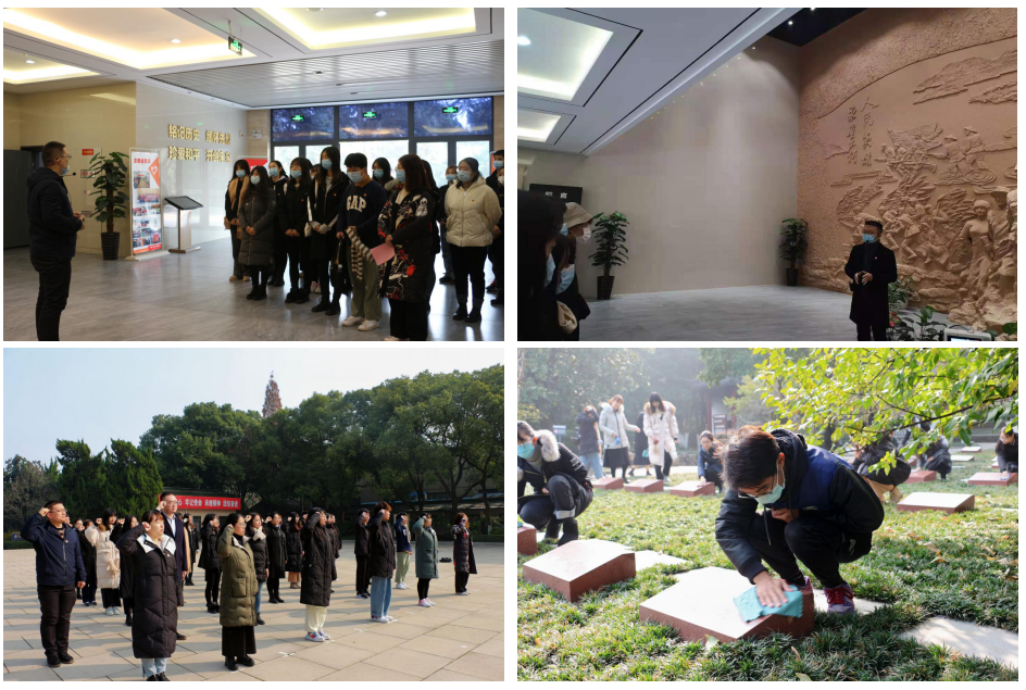学习结束后,在烈士纪念碑前,现场的党员员工及老师面对纪念碑、面对鲜艳的党旗重温了入党誓词,大家高举右手,齐声郑重宣誓:“我志愿加入中国共产党……”,铿锵恢宏的誓词,久久激荡在每位党员师生的心中。最后,全体同学为烈士陵园内的一百余个墓碑进行了擦拭。