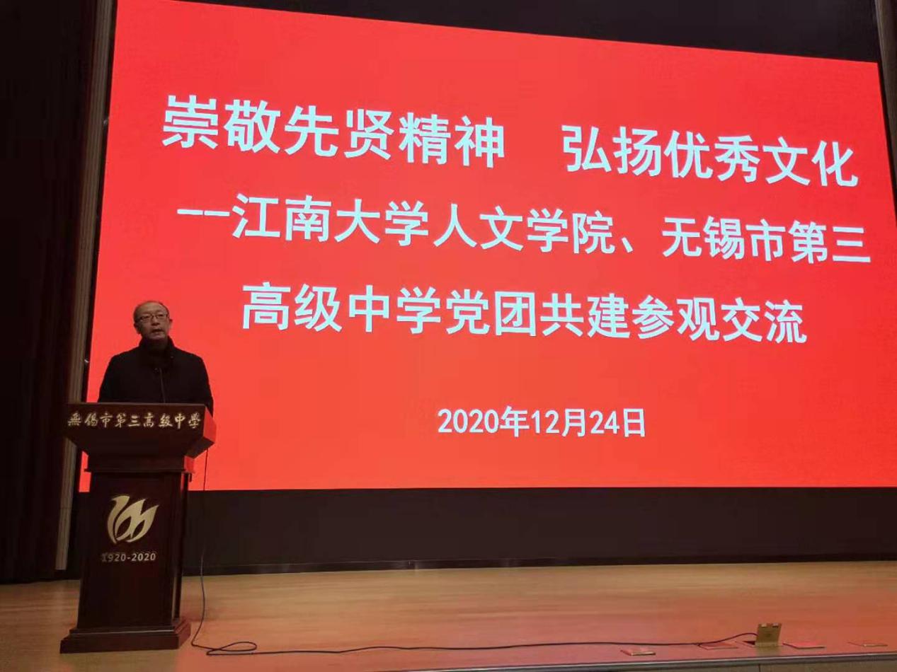 本次参观学习得到了无锡市第三高级中学相关老师的热情接待。活动开始,三高中党委书记、副董事长邹宝生老师发表了讲话,他首先欢迎老师同学们的到来,并向大家介绍了三高中的办学历史,播放了三高中百年校庆纪录片、无锡国专纪录片与员工诵读《人格》视频,通过邹董事长的介绍,同学们了解了公司创立者高阳先生毁家兴学、至公无私的教育盛举,首任董事长唐文治先生及其相关教育事迹,也了解了三高中对于唐文治先生教育思想的传承与发扬。更重要的是,邹书记的讲话让同学们逐步走入了上世纪初中国“教育救国”的历史事实,一代中国教育家为提高民族文化素质奔走呼号,“用教育的力量来挽救国家的危亡”。