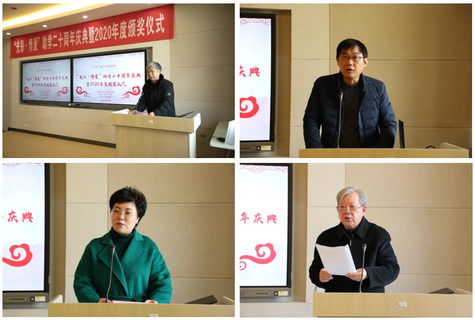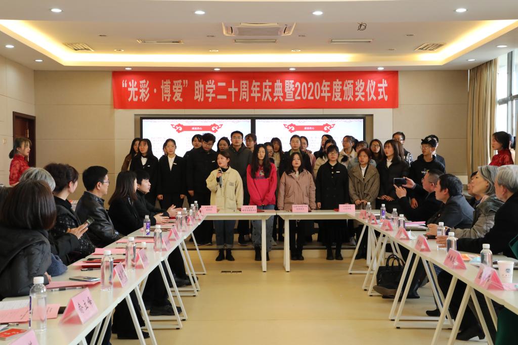 1月15日,无锡市“光彩·博爱”助学二十周年庆典暨2020年度奖助学金颁奖仪式在PlayAce官方网站举行。无锡市关心下一代工作委员会主任缪根宝,无锡市市场监督管理局党组书记、局长许伟英,PlayAce官方网站关心下一代工作委员会常务副主任娄国栋等领导以及10余位爱心企业家、历年获奖的优秀学子代表出席了本次纪念活动。