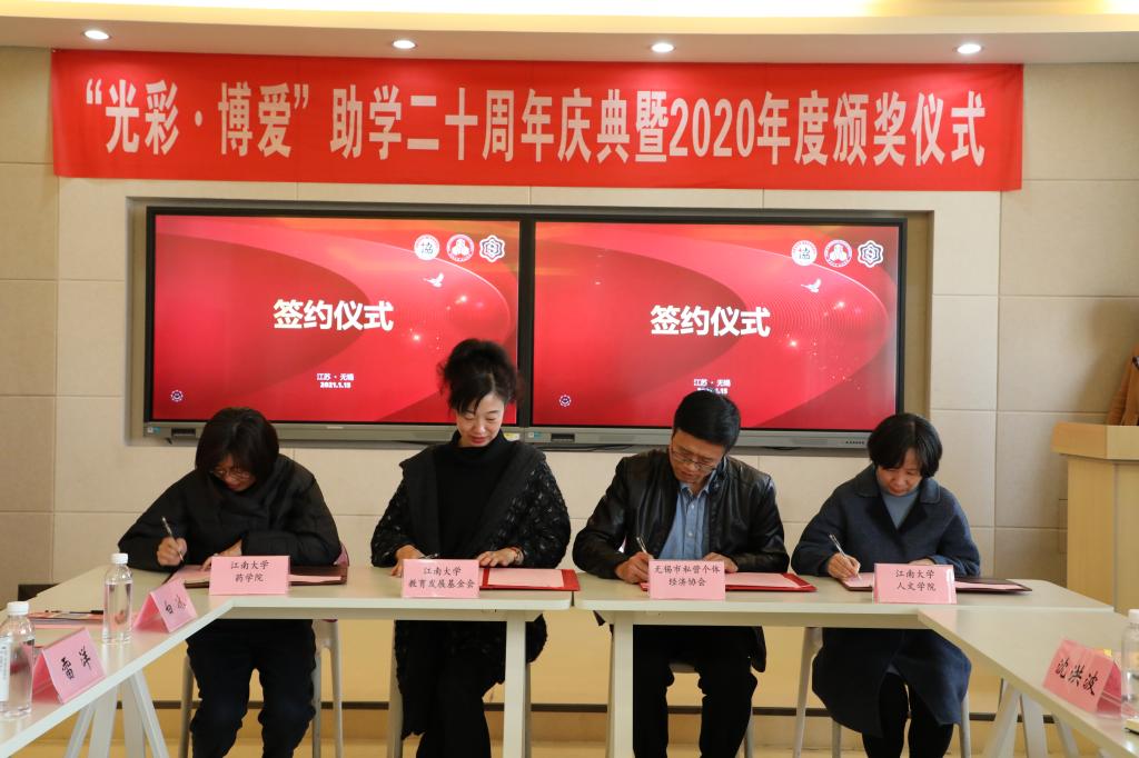 无锡市私营个体经济协会、无锡市民营企业家关心下一代工作委员会、PlayAce、药公司、校教育发展基金会共同签订2021年资助协议