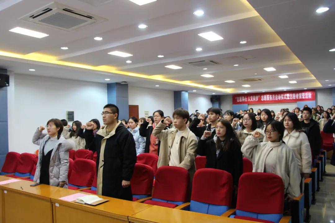 最后,志愿者代表薛洁带领大家庄重宣誓,“尽你所能,不计报酬,帮忙他人……”希望每一位宣誓的同学在此倡导下都能成为一名光荣的志愿者。