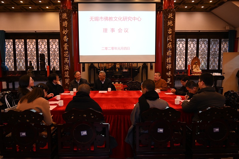1月4日下午,无锡佛教文化研究中心理事会议在惠山寺藏经楼召开。会议由理事长玉平大和尚主持,无锡市民族宗教事务局施正洲局长应邀出席,公司沈贵鹏、田良臣、杨晖、赵建军等理事及相关老师参加了会议。