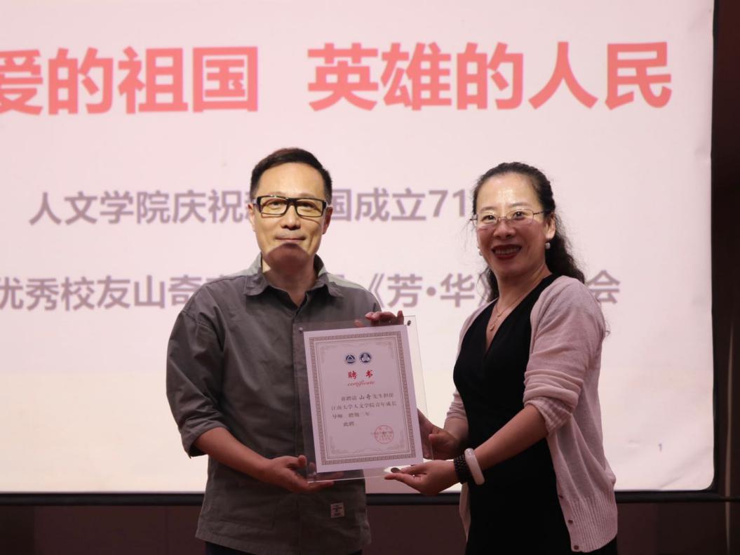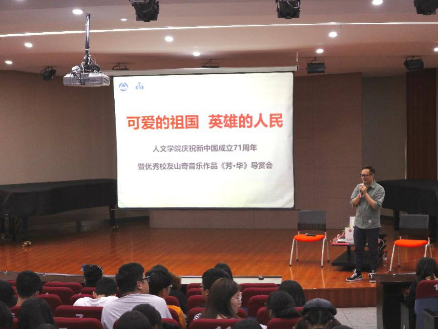 山奇老师在接下来的时间里邀请现场同学上台朗读《芳·华》中部分诗作,和一起同学们根据这些诗作创造的歌曲,并和同学们分享了歌曲带给大家的感受。《假如我在战斗中牺牲》中“假如我在战斗中牺牲,决不为短暂一生后悔”、“只要用鲜血换来边陲的安宁,我就与祖国大地熠熠生辉。”感人至深,崇高的精神令人敬佩;《思念》中战士们对已故战友的思念、缅怀深深地打动人心。