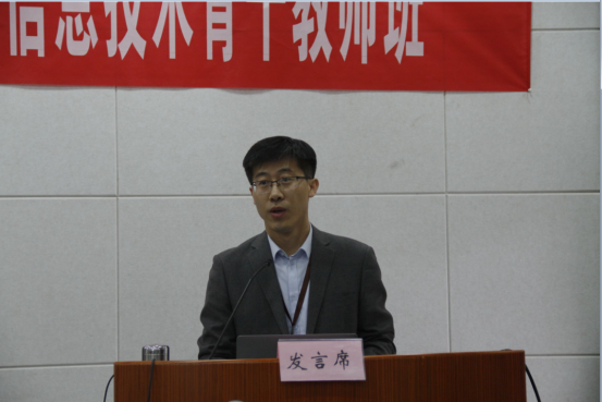 陈明选教授对课程方案进行了深度解读,本次培训的主题是面向新版课标的高中信息技术教学设计与实施,培训旨在深化高中信息技术教师在职业理解与员工发展方面的认识,强化信息化条件下的道德规范,提高师德践行能力;深度理解新版高中信息技术课程标准的内涵,把握信息技术课程前沿发展动态,根据公司和地区实际情况开发、设计具有特色的高中信息技术必修课程和选修课程;把握信息技术课程的教学特征,能够根据不同类型的课型进行教学设计,提高高中信息技术教学设计、教学实施、教学评价等能力;能够诊断分析高中信息技术教师教学问题,进行培训需求分析,能够设计培训方案,掌握适合高中信息技术学科培训的各种有效培训教学的方式方法。最后陈教授希望学员们珍惜机会,提高对培训的认识,真正做到学有所成,明确自身责任,深切感悟“国培”价值,积极互动反思,踊跃投身教育实践中。来自山东邹平县第一中学郭凤广作为学员代表发言,他号召全体学员珍惜研修机会,努力学习,勤于反思,为本次培训交上一份满意的答卷。
