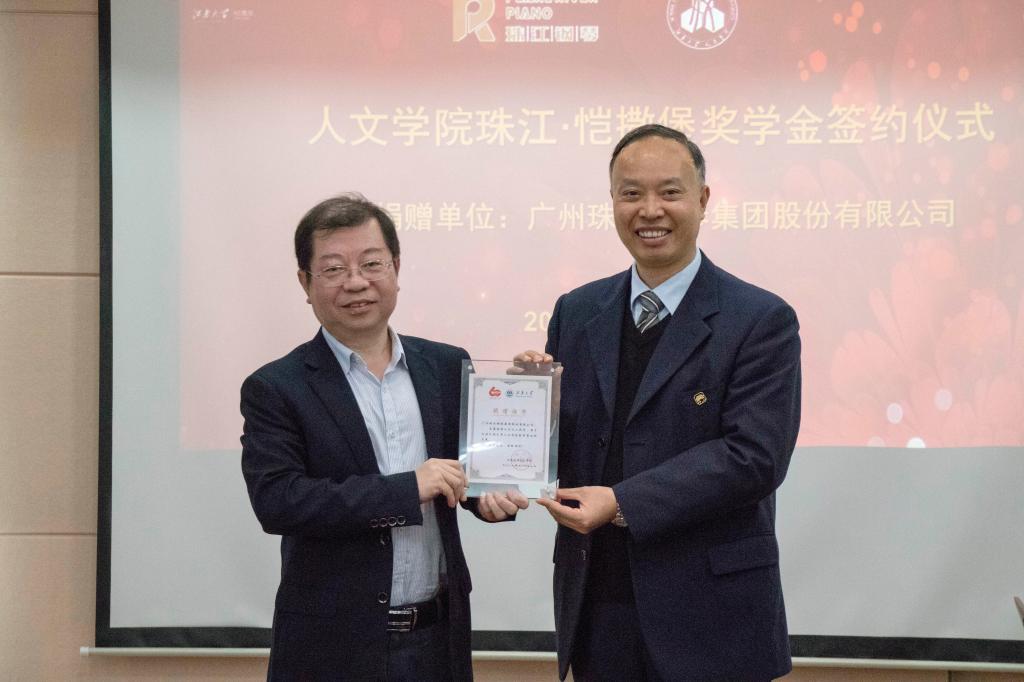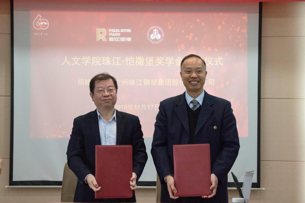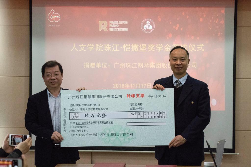 随后,在这庄重而温馨的氛围里,双方签订了捐赠协议,钞爱明先生代表珠江钢琴集团现场捐赠九万元,沈贵鹏书记代表PlayAce向珠江钢琴集团颁发捐赠证书。