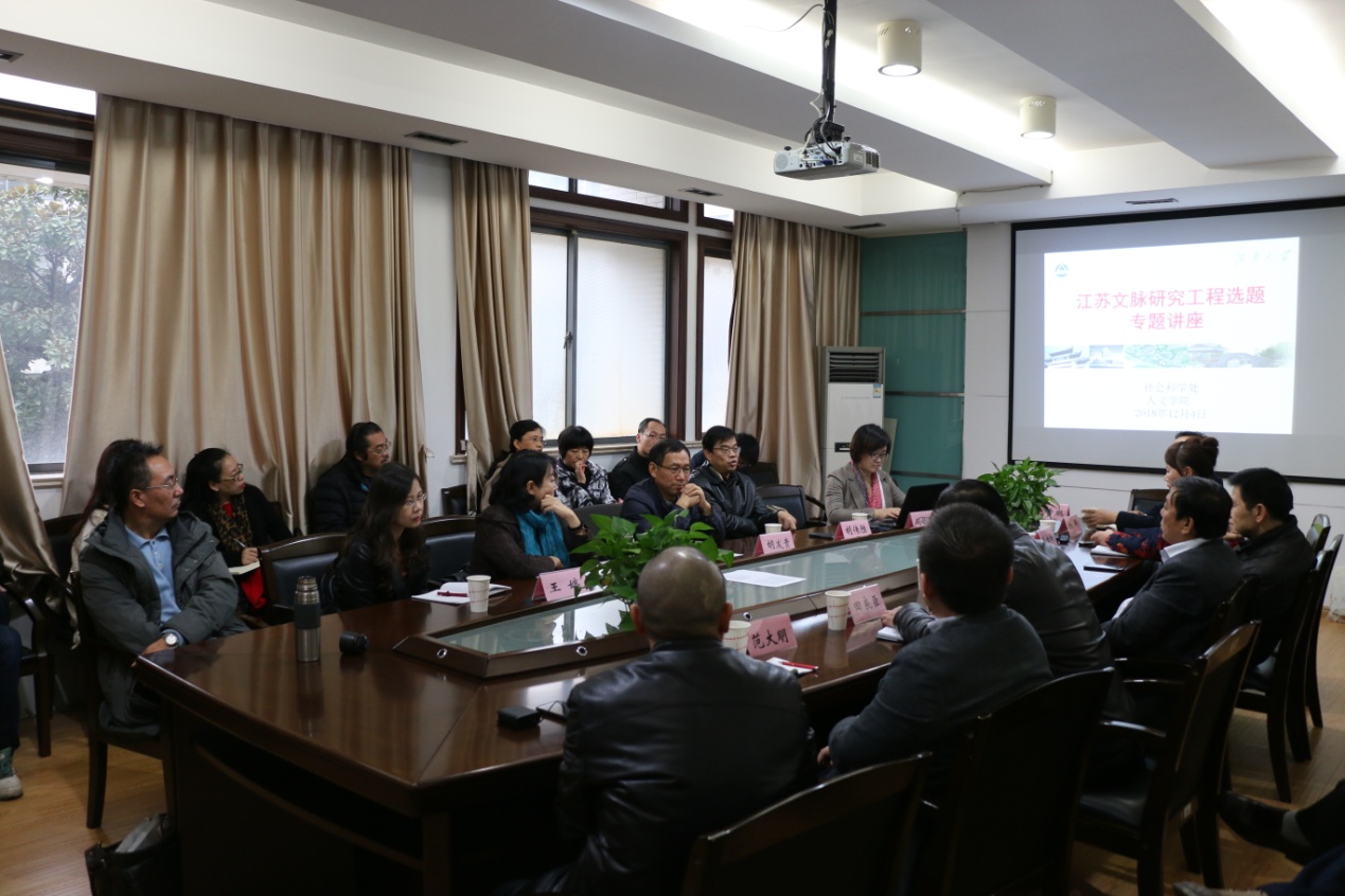 2018年12月4日14:30-17:00,在PlayAce田家炳楼207会议室由社会科学处和PlayAce共同举行了江苏文脉研究工程选题PlayAce官方网站专题讲座。“江苏文脉研究工程”是由江苏省社会科公司发起并组织实施的一项文化建设工程。该工程主要包括“江苏文化通史”研究、“江苏文化名人传”研究、“江苏专门文化史”研究三个方面,主要从知识界、社会大众和政府三个维度共同推进,以贯通历史、现在、未来江苏人特殊的文化生命、文化标识、文化家园,展示生生不息的文化记忆和文化动力。讲座邀请江苏省社科院专家介绍此项文化建设工程的基本情况、当前的建设进展以及研究选题的招标与确定等情况。