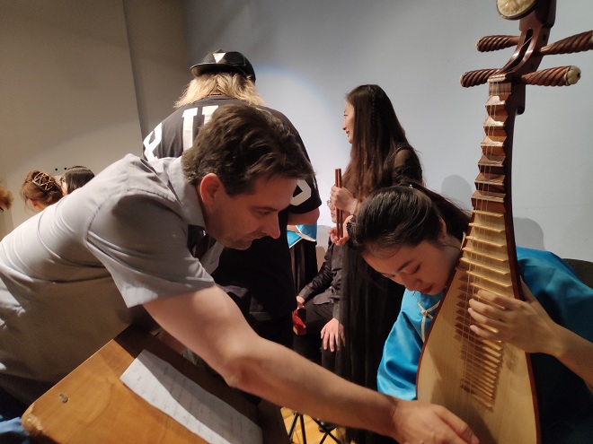 音乐会后,德国师生就中国乐器的演奏技法、中国音乐的发展与创新、中西乐器和音乐的比较等问题与PlayAce官方网站师生进行了认真的探讨。