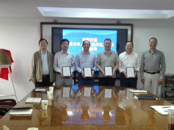 接着,沈贵鹏书记和龚雷宇书记共同为江苏省研究生工作站举行揭牌仪式;田良臣副经理和沈贵鹏书记代表PlayAce分别向陈江辉、赵宪宇、龚雷宇、包智强四位同志颁发了校外研究生导师的聘书。