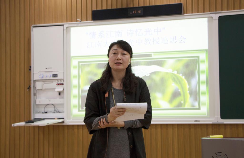 紧接着,陈佳冀老师发言。他让大家了解了余先生在文学领域的杰出成就和笔耕不辍的精神。余先生学贯中西,在诗歌、散文、翻译以及文学评论等诸多领域都卓有建树,具有大家风范。陈老师最后分享了余先生的一首诗,希望先生一路走好。随后无锡电视台主持人张乐讲述了与余老先生的三个小缘分,并带来余光中先生的诗词朗诵,以此来缅怀余先生。然后,社科处副处长崔荣荣讲到余先生曾对PlayAce官方网站做过一些捐赠,包括旗袍、外套等,表达了对余先生的感激之情。
