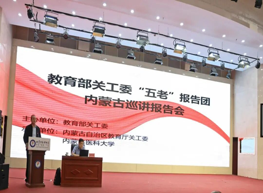 近日,教育部关工委在内蒙古自治区呼和浩特市举办“五老”报告团巡回宣讲活动。教育部关工委常务副主任、“五老”报告团副团长杨贵仁带队,报告团专家陈明选、曲建武、郑晓边分赴内蒙古医科大学、内蒙古电子信息职业技术公司、内蒙古农业大学、内蒙古鸿德文理公司、呼和浩特市第二中学、呼和浩特市第三十中学,围绕抗战精神、理想信念、心理健康等主题开展集中宣讲6场。各公司及院系关工委负责人、“五老”和师生代表近1200人参加活动。